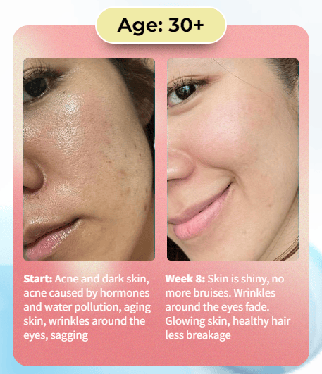 As you're getting older, the production of Collagen and Hyaluronic Acid, Ceramides, starts to decrease, and there is a more dramatic decline by your 30’s. Your skin begins to age and experience wrinkles, dryness, uneven skin tone, and loss of firmness.